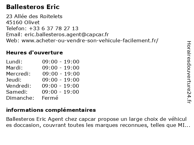 1 Eric Winteler - Masseur kinésithérapeute (Distance: 1,96 km) 83 Rue Jacques Monod, 45160 Olivet consultation, docteur, eric, kinésithérapeute, masseur, med, médecin, médecine, traitement, winteler 3 Dr. Eric Drouault - Rhumatologie (Distance: 2,02 km) 216 Rue Jacques Monod, 45160 Olivet consultation, docteur, dr., drouault, eric, rhumatologie, santé 4 Beduchaud Eric (Distance: 2,21 km) 177 Route de Saint-Mesmin, 45750 Saint-Pryvé-Saint-Mesmin beduchaud, eric 5 Les Cafés d' Eric (Distance: 2,60 km) . place du Châtelet, 45000 Orléans café, cafés, d', dégustation, eric, les, thé, épicerie 6 Hair Par Eric et David (Distance: 2,69 km) 22 Place du Chatelet, 45000 Orléans beauté, coiffiure, david, eric, et, hair, par, salon |