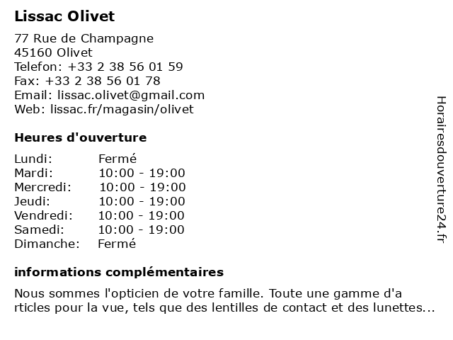 | Lundi | Fermé |