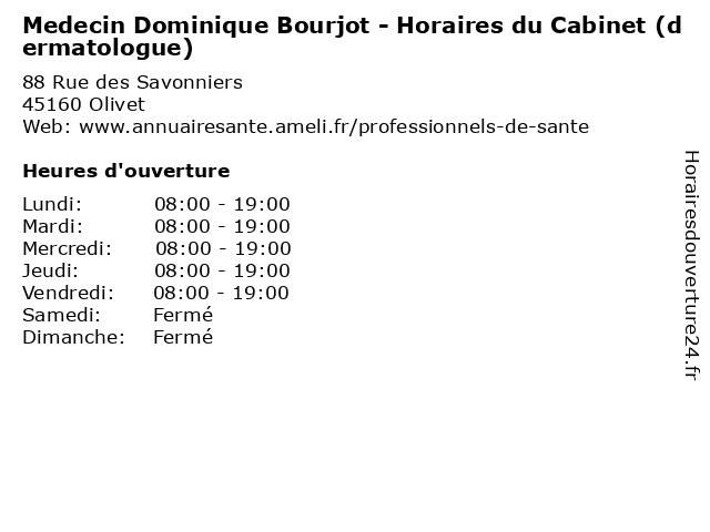 Termes de recherche pour Medecin Dominique Bourjot - Horaires du Cabinet (dermatologue):du, horaires, cabinet, services, santé, dominique, docteur, médecin, dermatologue, bourjot |