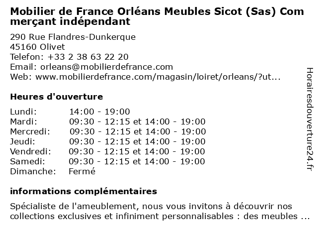 Termes de recherche pour Mobilier de France Orléans Meubles Sicot (Sas) Commerçant indépendant:de, orleans, sas, france, mobilier, meubles, indépendant, commercant, sicot |