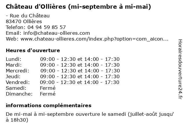 | Lundi | 09:00-12:30 et 14:00-17:30 |