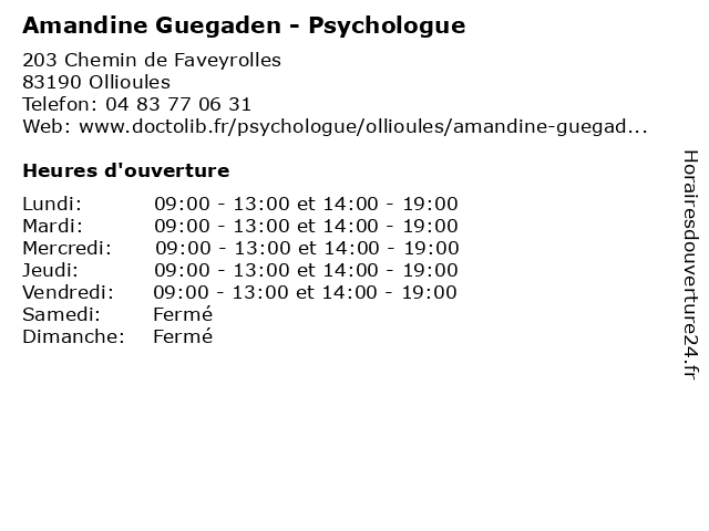 | Lundi | 09:00-13:00 et 14:00-19:00 |