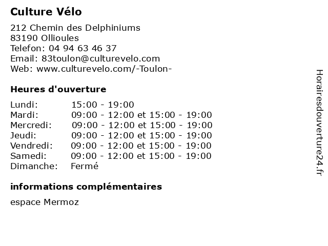 | Mercredi | 09:00-12:00 et 15:00-19:00 |