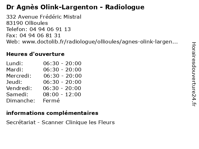 | Lundi | 06:30-20:00 |