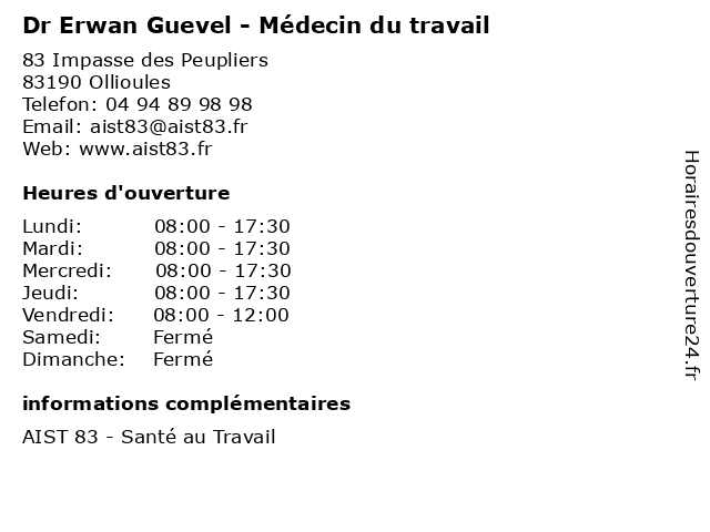 | Lundi | 08:00-17:30 |