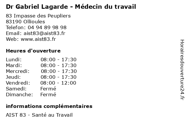 1 Dr Gerard Arnould - Médecin du travail (Distance: 0,00 km) 83 Impasse des Peupliers, 83190 Ollioules arnould, consultation, docteur, dr, du, gerard, med, médecin, traitement, travail 2 Dr Patrick Calatayud - Médecin du travail (Distance: 0,00 km) 83 Impasse des Peupliers, 83190 Ollioules calatayud, consultation, docteur, dr, du, med, médecin, patrick, traitement, travail 3 Dr Anne Cardinal-Viola - Médecin du travail (Distance: 0,00 km) 83 Impasse des Peupliers, 83190 Ollioules anne, cardinal, consultation, docteur, dr, du, med, médecin, traitement, travail, viola 4 AIST 83 - Centre de Santé au Travail (Distance: 0,10 km) - Impasse des Peupliers, 83190 Ollioules 83, aist, aist83, au, bilans, centre, de, santé, travail 5 AIST 83 - Centre de Santé au Travail (Distance: 3,35 km) 57 Allée de Vilnius, 83500 La Seyne-sur-Mer 83, aist, aist83, au, bilans, centre, de, santé, travail 6 AIST 83 - Centre de Santé au Travail (Distance: 3,57 km) 33 Rue Berrier Fontaine, 83000 Toulon 83, aist, aist83, au, bilans, centre, de, santé, travail |
