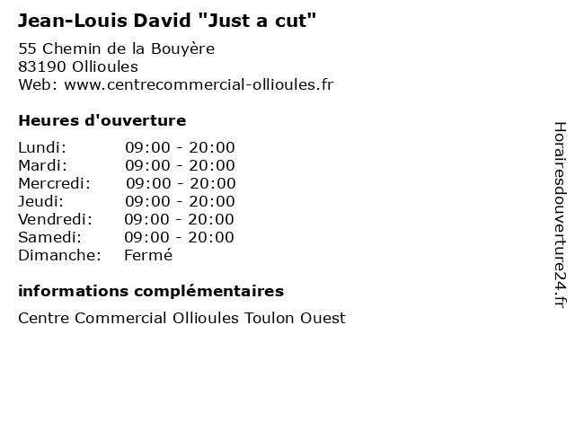 Termes de recherche pour Jean-Louis David "Just a cut":ollioules, jean, toulon, commercial, centre, louis, ouest, david, "just, cut" |