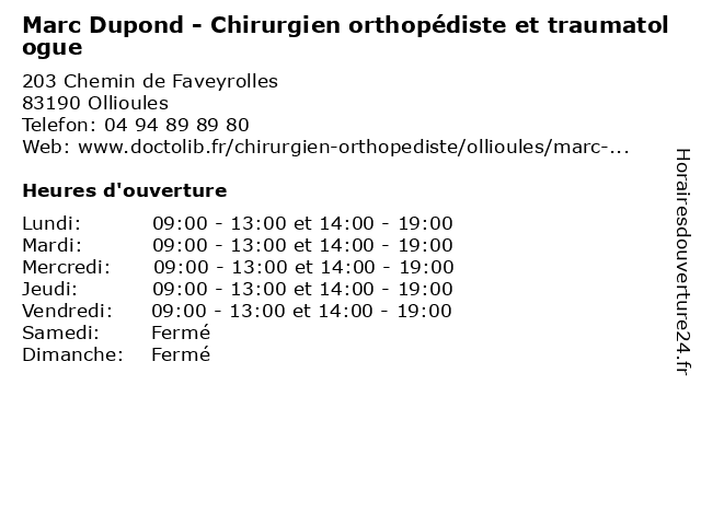 | Lundi | 09:00-13:00 et 14:00-19:00 |