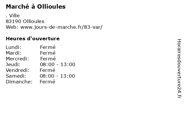 | Jeudi | 08:00-13:00 |