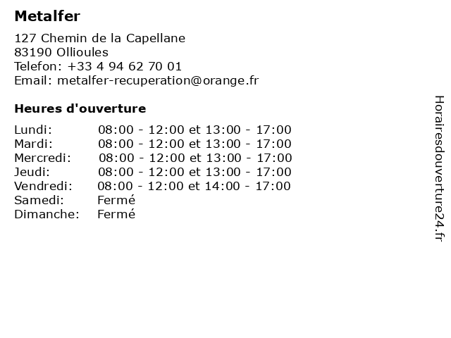 | Lundi | 08:00-12:00 et 13:00-17:00 |