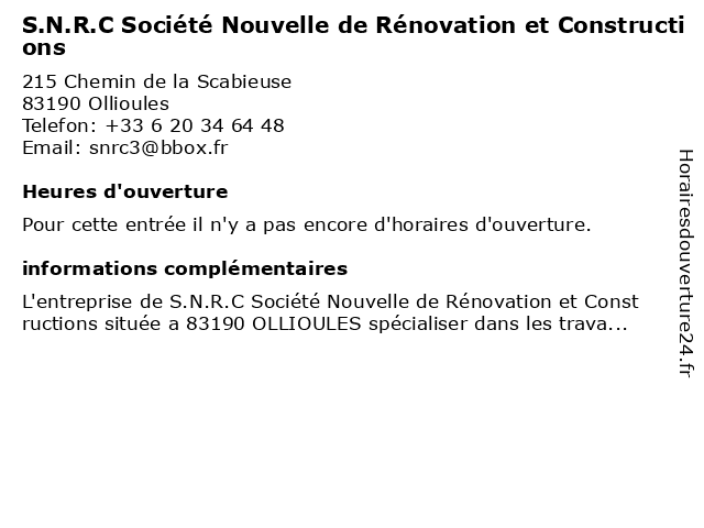 | Appeler S.N.R.C Société Nouvelle de Rénovation et Constructions | |