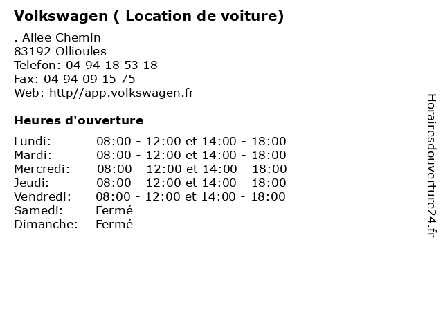 1 Volkswagen (Distance: 0,00 km) . Allee Chemin, 83192 Ollioules automobiles, concessionnaire, garage, motos, volkswagen 2 Volkswagen ( Atelier Peinture Carrosserie) (Distance: 0,00 km) . Allee Chemin, 83192 Ollioules atelier, automobiles, carrosserie, concessionnaire, garage, motos, peinture, volkswagen 3 Intermarché Location Ollioules (Distance: 1,45 km) - Zi De La Gare, 83190 Ollioules agence, intermarché, location, ollioules, utilitaires, véhicules 4 Points recharge de voiture électrique (Distance: 2,48 km) 100 Avenue Pierre-Gilles de Gennes, 83190 Ollioules de, points, recharge, station, voiture, électrique 5 Freche Location (Distance: 2,59 km) - Chemin des Delphiniums, 83190 Ollioules agence, freche, location, locations, matériels, travaux, véhicules 6 |