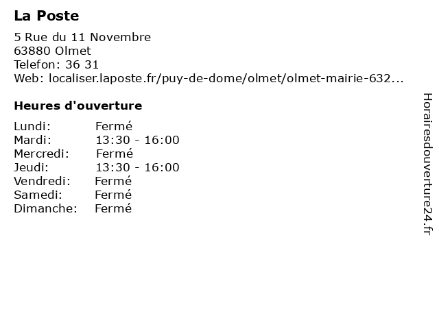 6 La Poste (Distance: 1,69 km) 54 avenue de Royat, 63400 Chamalières agence, assurance, banque, banque postale, bureau de poste, chronopost, colis, courrier, dps, expéditions internationales, la, point, postale, poste, relais, timbres, téléphonie, ups, western union |