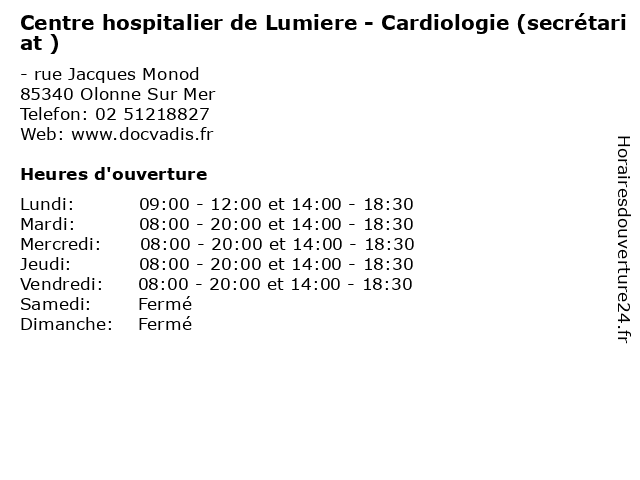 Termes de recherche pour Centre hospitalier de Lumiere - Cardiologie (secrétariat ):de, centre, santé, lumière, secretariat, hospitalier, docteur, consultation, cardiologie |