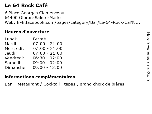 Termes de recherche pour Le 64 Rock Café:restauration, café, boissons, le, tapas, rock, 64, débits, titou64 |