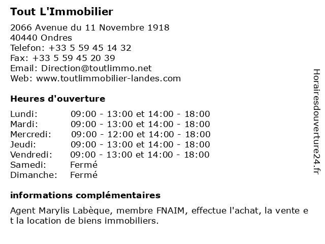 Horaires d'ouverture |