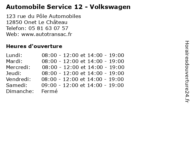 | Lundi | 08:00-12:00 et 14:00-19:00 |