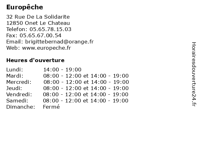 | Samedi | 08:00-12:00 et 14:00-19:00 |