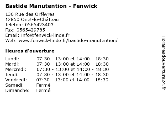 | Lundi | 07:30-13:00 et 14:00-18:30 |