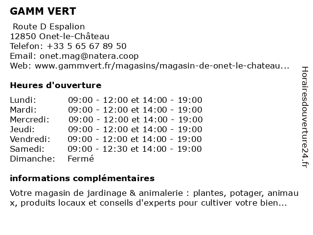 3 GAMM VERT (Distance: 7,11 km) 212 Avenue de Rodez, 12450 Luc-la-Primaube animalerie, animaux, gamm, jardinage, plantes, potager, produits locaux, vert 4 GAMM VERT (Distance: 15,62 km) Avenue de Millau, 12290 Pont-de-Salars animalerie, animaux, gamm, jardinage, plantes, potager, produits locaux, vert 6 GAMM VERT (Distance: 15,78 km) Rue du Puech, 12160 Baraqueville animalerie, animaux, gamm, jardinage, plantes, potager, produits locaux, vert |