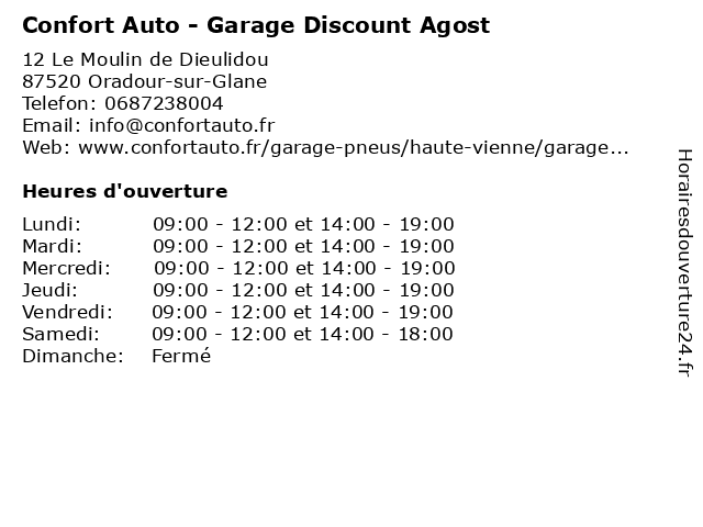 1 Confort Auto / Dépannage Automobile (Distance: 4,18 km) 12 Moulin, 87520 Oradour auto, automobile, automoto, autovision, confort, contrôle technique, dépannage, r&r 2 Confort Auto - Garage Dubois (Distance: 5,62 km) 9 Moulin de l’Hôpital, 87200 Saint-Brice atelier, auto, automobile, carrosserie, confort, dubois, entretien, garage, montage, pneus 3 Dépannage Discount Informatique (Distance: 6,64 km) 260 Rue des Chênes, 87200 Saint Junien discount, dépannage, dépannage discount informatique, informatique, réparation, téléphone 5 Confort Auto / Garage Gauvin (Distance: 13,34 km) 6 Rue des Écoles,, 87430 Verneuil-sur-Vienne auto, automobile, automoto, autovision, confort, contrôle technique, garage, gauvin, r&r 6 Confort Auto - CJ Auto 87 (Distance: 14,91 km) 7 rue La Barrière, 87140 Chamboret 87, atelier, auto, automobile, carrosserie, cj, confort, entretien, garage, montage, pneus |