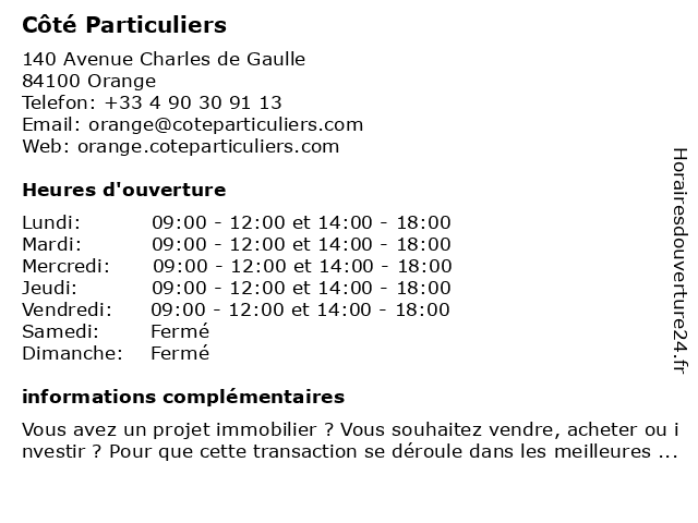 1 Côté Particuliers (Distance: 19,90 km) 95 Boulevard Calmette, 30400 Villeneuve-lès-Avignon côté, particuliers 2 Service des impôts des particuliers du centre des finances publiques (Distance: 0,50 km) 132 allée d'Auvergne, 84100 Orange administration, assoc, centre, de, des, du, finances, foncière, impôts, particuliers, publicité, publiques, service, services, services publics 3 Côté Route Orange Sud by First Stop (Distance: 2,84 km) 659 Route De Jonquières, 84100 Orange atelier d'usinage, by, côté, first, magasin de pièces automobiles, magasin de pneus, orange, route, station-service de changement de l'huile, stop, sud 4 Restaurant Côté Sud (Distance: 8,08 km) 3395 Route d Orange, 84100 Uchaux bar, bistro, bistrot, brasserie, café, côté, pub, restaurant, restauration, resto, sud 5 Côté Azur Immobilier (Distance: 13,14 km) 446 Chemin de Carnasse, 30150 Sauveterre azur, côté, immobilier 6 Maisons Côté Soleil (Distance: 17,57 km) 771 Avenue Marc LEPOUTRE, 84700 Sorgues acheter, conception, construire, côté, louer, maison, maisons, soleil, vendre |