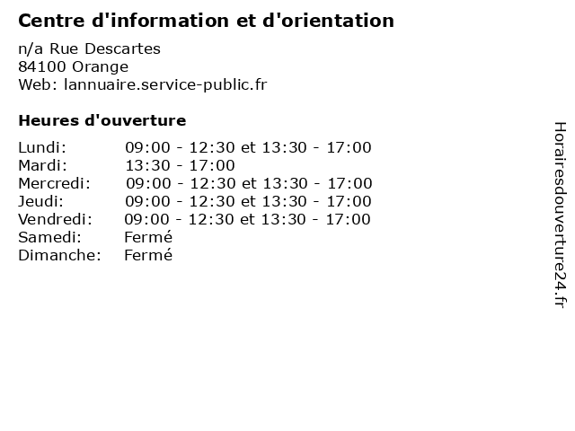 | Lundi | 09:00-12:30 et 13:30-17:00 |