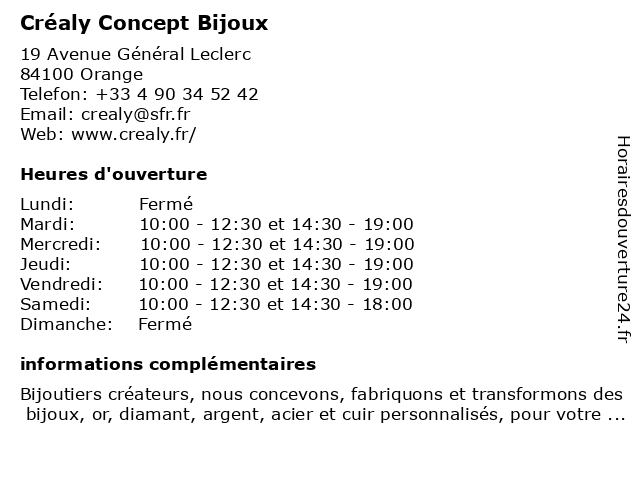 | Mercredi | 10:00-12:30 et 14:30-19:00 |