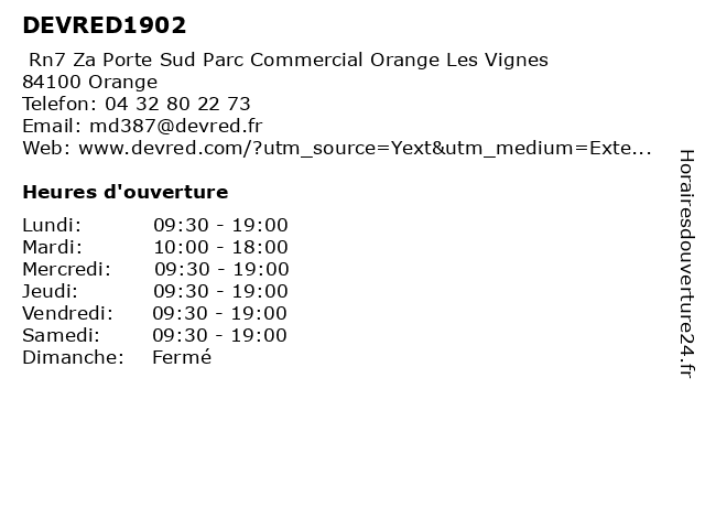 1 DEVRED1902 (Distance: 14,35 km) 533 Avenue Louis Braille Cc Auchan Avignon Nord, 84130 Le Pontet devred1902, fabricant de prêt-à-porter, magasin de chaussures, magasin de smokings, magasin d’accessoires de mode, mode 2 DEVRED1902 (Distance: 18,72 km) 1 Cc Leclerc, 30133 Les Angles devred1902, fabricant de prêt-à-porter, magasin de chaussures, magasin de smokings, magasin d’accessoires de mode, mode 3 Jules Orange-Jonquières (Distance: 1,60 km) Route De Jonquières, 84100 Orange jonquières, jules, magasin de smokings, magasin de t-shirts, magasin d’accessoires de mode, mode, orange 4 PaCaP - Atelier Scierie (Distance: 4,84 km) 316 Chemin de Rimonet, 84100 Orange atelier, fabricant, fabrique, manuel, orange, pacap, scierie 5 ECV Emballages (Distance: 5,08 km) . Chemin de l'Arnage, 84100 Orange ecv, emballages, fabricant, fabrique, manuel, orange 6 Smurfit Kappa Alfa (Distance: 15,11 km) - Route nationale 7, 84130 Le Pontet alfa, carton, emballage, entreprise, fabricant, kappa, papier, production, smurfit |