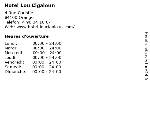 | Samedi | 00:00-24:00 |