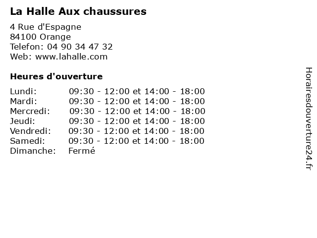 1 La Halle Aux chaussures (Distance: 15,61 km) 558 Avenue Louis Braille, 84130 Le Pontet aux, chaussures, femme, halle, homme, la, magasin, vetement 2 La Halle aux Chaussures (Distance: 15,72 km) 28 Avenue de Saint-Tronquet, 84130 Le Pontet aux, beaute&sante, bijoux, chaussures, chausures, decoration, halle, la, mode enfants, mode femmes, mode hommes, optique, restaurant, sport 3 La Halle Aux chaussures (Distance: 18,74 km) 44 Route de Saint-Gervais, 30200 Bagnols-sur-Cèze accessoires, aux, chaussures, halle, la, la halle, mode 4 La Halle (Distance: 1,09 km) n/a Coudoulet, 84100 Orange bags, child, clothing, halle, la, lingerie, man, shoes, woman 5 GEMO ORANGE Chaussures et Vêtements (Distance: 1,46 km) Rue Cinsault, 84100 Orange bijoux et accesoires, chaussures, et, gemo, lingerie, magasin bébé, maroquinerie, mode et habillement, orange, vêtements, vêtements bébé, vêtements enfant, vêtements femme, vêtements homme 6 Marché aux primeurs à Orange (Distance: 9,21 km) . Passadoires, 84100 Orange aux, frutas, hortalizas, marché, mercado, orange, primeurs, verduras |