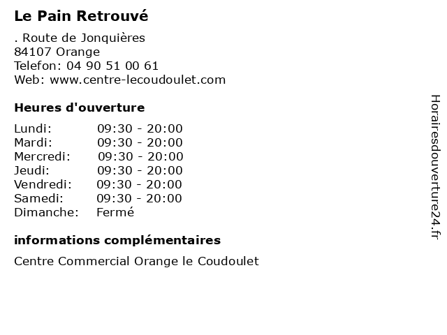 | Lundi | 09:30-20:00 |