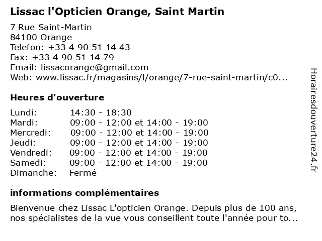 2 Opticien Orange - Optic 2000 (Distance: 0,03 km) 13 Rue Saint-Martin, 84100 Orange 2000, lentilles de contact, lunettes de soleil, lunettes de vue, optic, optic2000, opticien, opticien optic2000, orange, ray-ban, rayban 3 Boutique Saint James (Distance: 0,13 km) 9 rue Saint-Martin, 84100 Orange accessoires, boutique, james, magasin, marins, prêt à porter, saint, vêtements 4 Opticien Orange | Alain Afflelou (Distance: 0,14 km) 42 bis Rue Saint Martin, 84100 Orange afflelou, alain, magasin de lunettes de soleil, magasin d’accessoires de mode, opticien, optométrie, orange 5 Opticien Krys (Distance: 0,15 km) 16 Rue de la république, 84100 Orange krys, magasin de lentilles correctrices, magasin de lunettes de soleil, opticien 6 AXA Assurance et Banque Klelifa Martin Sylla (Distance: 0,23 km) 13 Cours Aristide Briand, 84100 Orange assurance, assurance appartement, assurance auto, assurance entreprise, assurance epargne, assurance habitation, assurance maison, assurance professionnelle, assurance santé, assurance voiture, axa, banque, et, klelifa, martin, sylla |