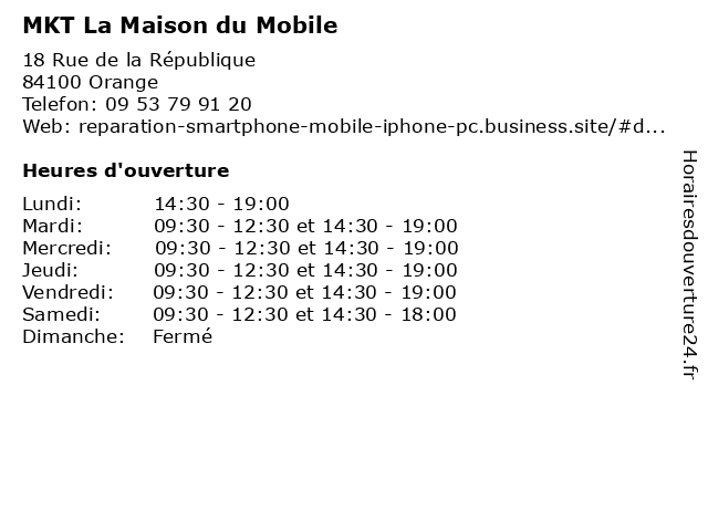 | Mardi | 09:30-12:30 et 14:30-19:00 |