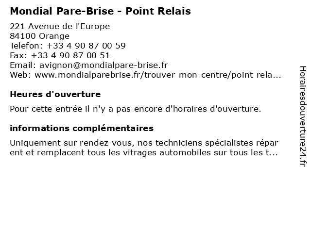 | Appeler Mondial Pare-Brise - Point Relais | |