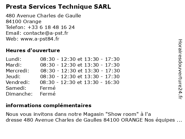 | Lundi | 08:30-12:30 et 13:30-17:30 |