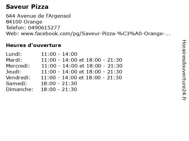 | Mercredi | 11:00-14:00 et 18:00-21:30 |