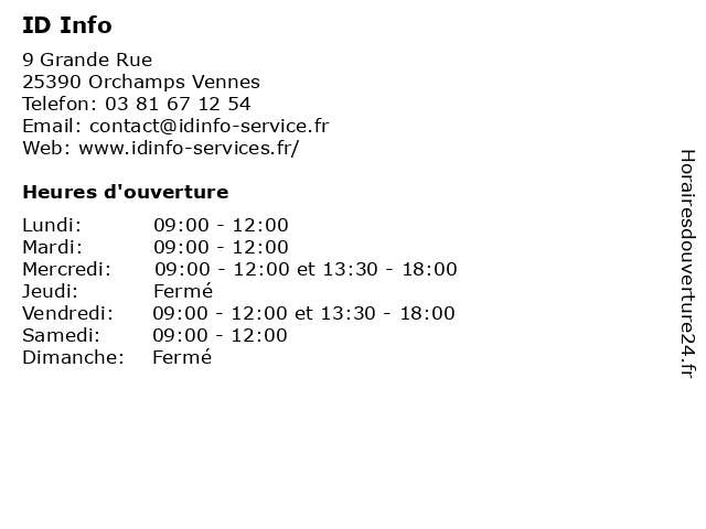 | Mercredi | 09:00-12:00 et 13:30-18:00 |