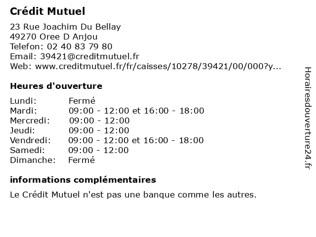 1 Crédit Mutuel (Distance: 0,00 km) 23 Rue joachim du bellay, 49270 Oree D'Anjou compagnie de téléphone, crédit, mutuel, organisme d'assurance 2 Crédit Mutuel (Distance: 0,01 km) 23 Rue Joachim du Bellay, 49270 Saint-Laurent-des-Autels agence, assurance, bancaire, banque, crédit, mutuel 3 Crédit Mutuel (Distance: 9,44 km) 131 Rue des Grands Champs, 44150 Ancenis agence, assurance, bancaire, banque, crédit, mutuel 4 Crédit Mutuel (Distance: 12,07 km) 26 Avenue Bon Air, 49110 Saint-Pierre-Montlimart agence, assurance, bancaire, banque, crédit, mutuel 5 Crédit Mutuel (Distance: 13,19 km) 7 Rue Porte Saumon, 44430 Le Loroux-Bottereau agence, assurance, bancaire, banque, crédit, mutuel 6 Crédit Mutuel (Distance: 15,09 km) 18 Rue François Luneau, 44330 Vallet agence, assurance, bancaire, banque, crédit, mutuel |