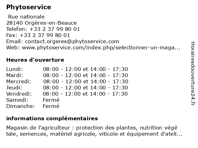 1 Phytoservice (Distance: 0,00 km) Rue nationale, 28140 Orgères-en-Beauce phytoservice