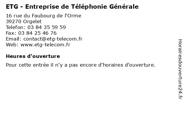 | Appeler ETG - Entreprise de Téléphonie Générale | |