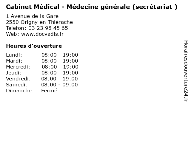 | Jeudi | 08:00-19:00 |