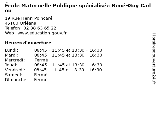 | Mardi | 08:45-11:45 et 13:30-16:30 |