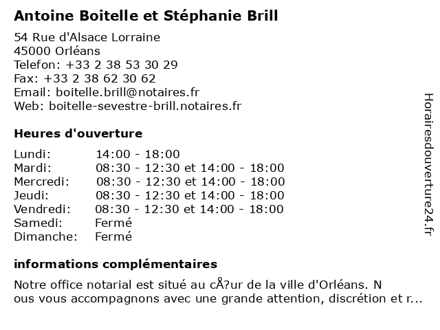 1 Maître Marie-Stéphanie Simon - Avocat (Distance: 0,12 km) 22 Rue de la Republique, 45000 Orleans avocat, justice, lois, maitre, marie, maître, simon, stéphanie 2 SCP Antoine VOLLET Daniel OUNGRE Didier CLIN (Distance: 0,29 km) 3 Rue de la République, 45000 Orléans antoine, clin, daniel, didier, oungre, scp, vollet 3 Stéphanie Lemaire - Sage-femme (Distance: 0,90 km) 1 Rue Porte Madeleine, 45100 Orleans consultation, docteur, dr, femme, lemaire, med, médecin, sage, stephanie, stéphanie, traitement 4 ACTM Antoine Ceccaldi - Extra (Distance: 0,93 km) 31 Rue de Coulmiers, 45000 Orléans actm, antoine, ceccaldi, extra 5 Stéphanie Hergott / Hypnose - Massages (Distance: 1,63 km) 1 Rue Louis Braille, 45000 Orléans beauté, hergott, hypnose, massage, massages, salon, santé, stephanie, stéphanie 6 Stéphanie Givelet - Sage-femme - secretariat (Distance: 2,27 km) 3 Bis Rue Honoré d'Estienne d'Orves,, 45100 Orléans femme, givelet, médecin, médecine, médical, pharmaceutique, sage, secretariat, stéphanie, traitement |