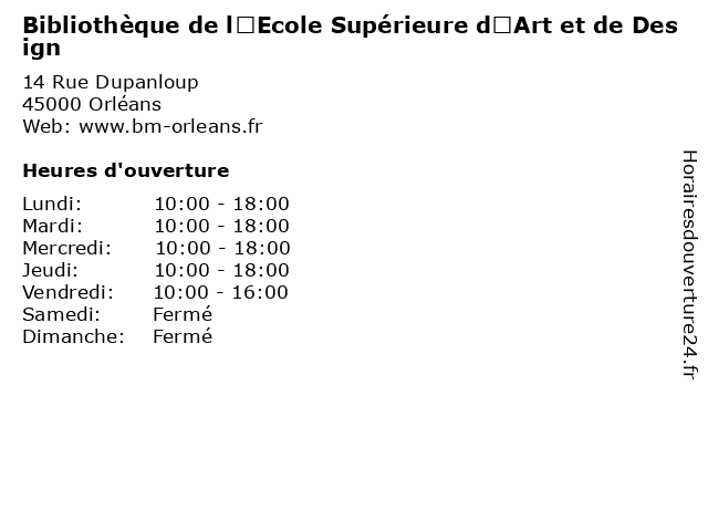 1 École supérieure d’art et de design (Distance: 0,04 km) 14 rue Dupanloup, 45000 Orleans de, design, d’art, et, la filiere design objet/espace, supérieure, visuel/graphique, école 2 Bibliothèque du Musée des Beaux-Arts (Distance: 0,09 km) 1 Rue Fernand Rabier, 45000 Orléans arts, beaux, bibliothèque, des, du, livre, musée, médiathèque, services 4 Martinez Design (Distance: 0,55 km) 1 Rue Charles Sanglier, 45000 Orléans agencement, communication, design, martinez, signalétique 5 SITE WEB PRO DESIGN (Distance: 1,37 km) 12 BIS RUE DE LA BORDE, 45000 ORLEANS creation site internet, creation site web, design, internet, pro, site, web, webdesigner, webmaster 6 Sool Design Sport - Agence de Communication (Distance: 1,44 km) 87 quater rue de Coulmiers, 45000 Orléans agence, communication, de, design, informatique, publicité, solutions, sool, sport, web |