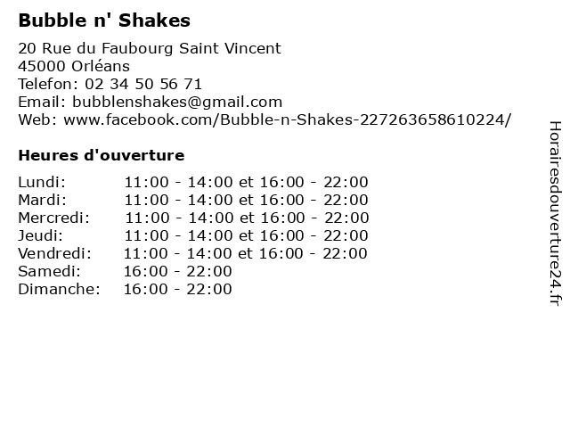 | Vendredi | 11:00-14:00 et 16:00-22:00 |