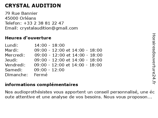 2 Audioprothésiste Krys Audition (Distance: 0,19 km) 26 Rue De La République, 45000 Orléans audiologie, audioprothésiste, audition, krys 3 Écouter Voir Audition ORLEANS BANNIER (Distance: 0,22 km) 14 Rue Bannier, 45000 Orléans audition, bannier, orleans, voir, écouter 6 |