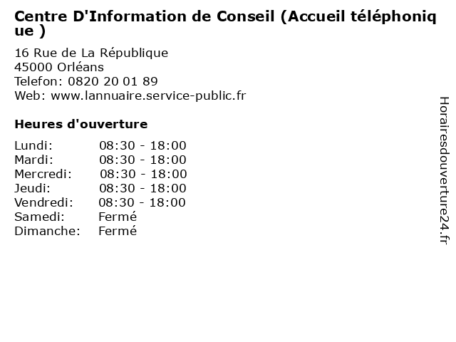 1 Centre D'Information de Conseil (Distance: 0,00 km) 16 Rue de La République, 45000 Orléans administration, assoc, centre, conseil, d'information, de, services, services publics 2 Avocat Loire Conseil (Distance: 0,18 km) 62 rue de la bretonnerie, 45000 Orléans avocat, conseil, droit, loire 3 Point d'information local dédié aux personnes âgées (Distance: 0,21 km) 69 rue Bannier, 45000 Orléans administration, assoc, associations, aux, d'information, des, dédié, greffe, local, locale, mission, personnes, point, services, services publics, âgées 4 Point Information Jeunesse (Distance: 0,21 km) 3-5 Boulevard de Verdun, 45000 Orléans administration, assoc, information, jeunesse, point, services, services publics 5 Agence Départementale D'Information Sur Le Logement (Distance: 0,23 km) 19 Rue des Huguenots, 45000 Orléans administration, agence, assoc, d'information, départementale, le, logement, services, services publics, sur 6 Free Dom (Accueil physique) (Distance: 0,28 km) 103 Rue Bannier, 45000 Orléans accueil, aide, dom, free, gardiennage, physique, sante, services |