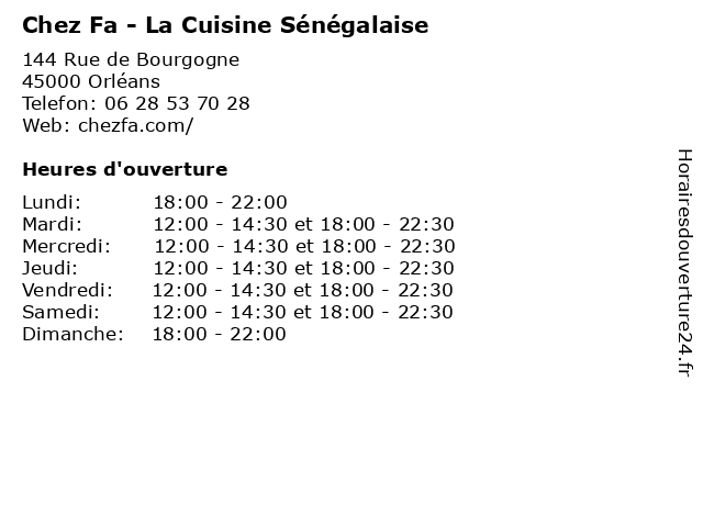 | Jeudi | 12:00-14:30 et 18:00-22:30 |