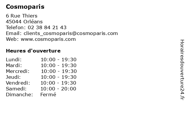 1 The Kooples (Distance: 0,00 km) 6 Rue Thiers, 45000 Orléans accessoires, habilement, kooples, mode, prêt à porter, the, vêtements 2 Geox (Distance: 0,00 km) 6 Rue Adolphe Thiers, 45000 Orleans accessoires, boutique, chaussures, femme, geox, homme, magasin, mode, sport 3 Comptoir des Cotonniers (Distance: 0,00 km) 6 Rue Adolphe Thiers, 45000 Orleans accessoires, comptoir, cotonniers, des, femme, mode, vêtements 4 Sud Express (Distance: 0,00 km) 6 rue Thiers, 45000 Orléans accessoires, chaussures, express, habillement, mode, pret-a-porter, sud, vetements 5 Chevignon (Distance: 0,00 km) 6 Rue Thiers, 45000 Orléans chaussures, chevignon, costumes, magasin de vêtements pour hommes, mode. 6 Agatha (Distance: 0,00 km) 6 rue Thiers, 45000 Orléans accessoires, agatha, bijouterie, bijoutier, bijoux, collections, fantaisie, femmes, haut de gamme, joaillerie, luxe, mode |